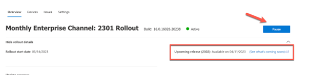 Du får detaljerad information om vilken version av Office som kommer installeras och när. Möjligheten att pausa och till och med rulla tillbaka Office-installationer till tidigare versioner finns.