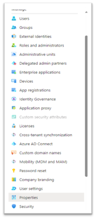 För att kontrollera om Security Defaults är aktiverat i er tenant, logga in på portal.azure.com, gå in på Azure Active Directory och klicka sedan på Properties i menyn till vänster.