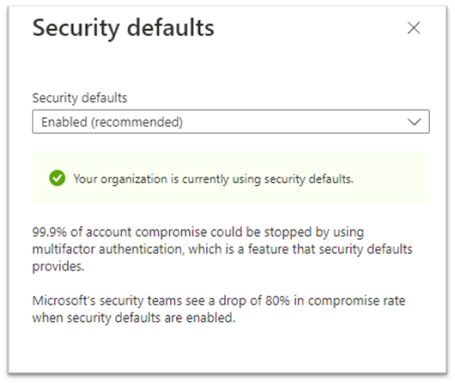 Microsoft har, sedan en tid tillbaka, stegvist aktiverat s.k. Security Defaults i alla Azure AD tenants som inte har vissa säkerhetsfunktioner aktiverade.